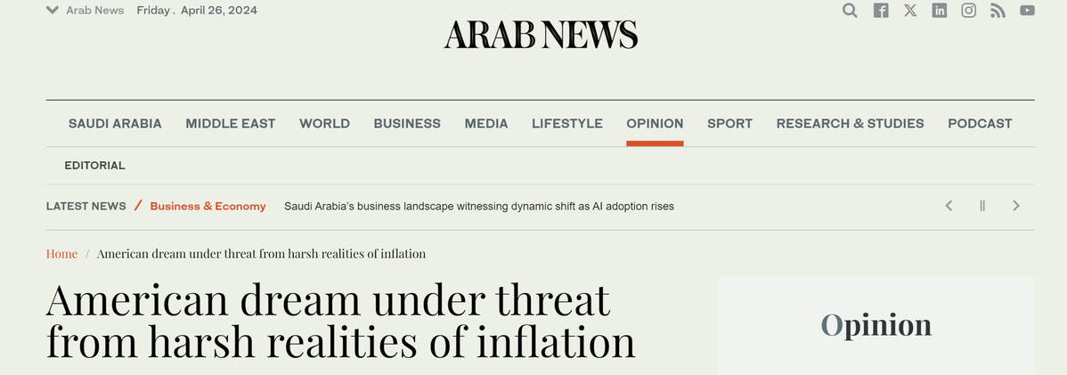 沙特阿拉伯媒體《阿拉伯新聞》網(wǎng)站4月24日刊發(fā)評(píng)論文章稱,美國通脹高企,物價(jià)不斷上漲,導(dǎo)致民眾的購買力持續(xù)下降,基本生活消費(fèi)品成為無力負(fù)擔(dān)的“奢侈品”?!懊绹鴫?mèng)”被殘酷的現(xiàn)實(shí)擊潰。文章批評(píng)美國政府對(duì)通脹危機(jī)的反應(yīng)嚴(yán)重不足,將黨派問題置于解決民眾的迫切需求之上,削弱了民眾的信任感。