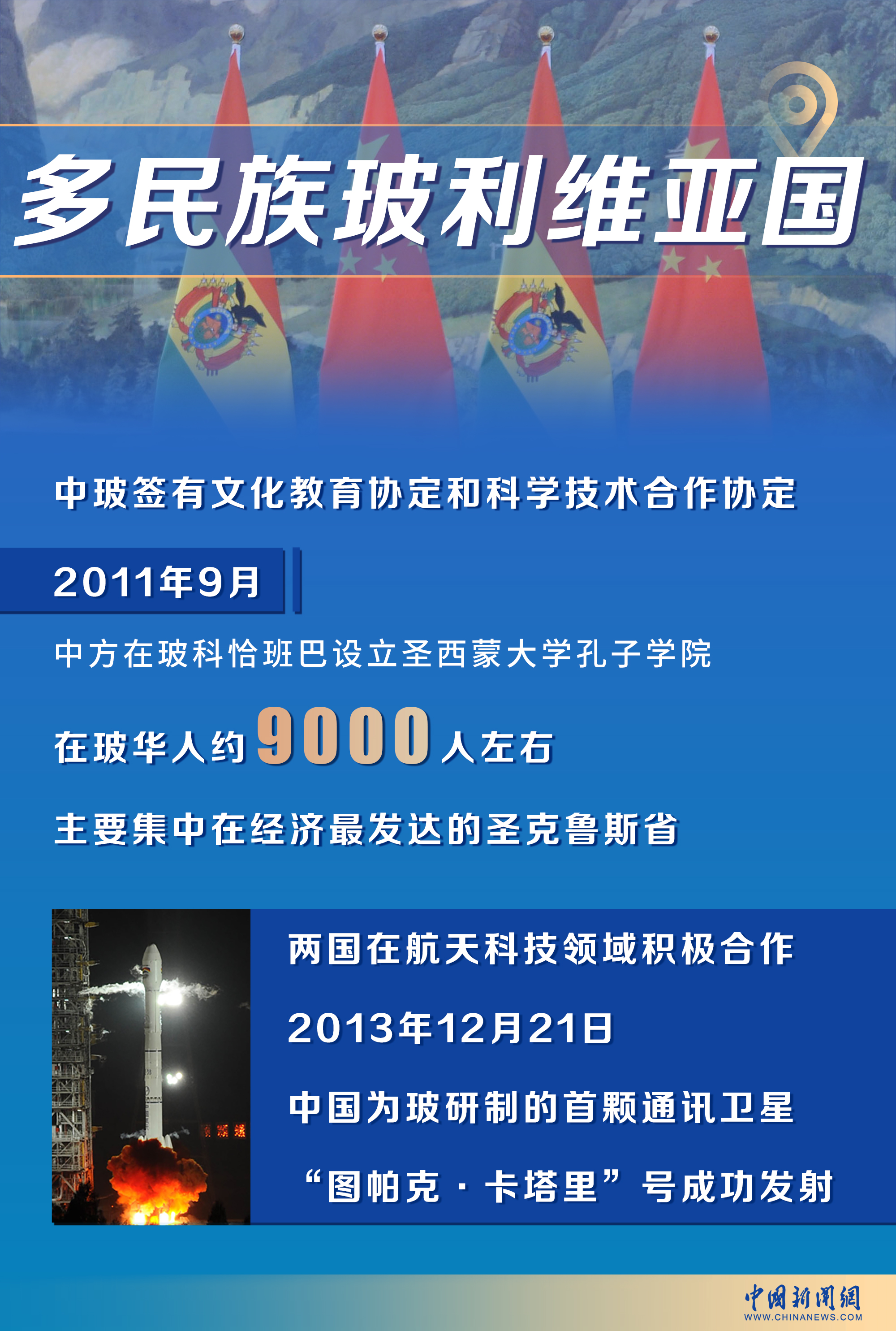 中玻兩國在航天科技領域的合作尤為突出。2013年12月21日,中國為玻利維亞研制的首顆通訊衛(wèi)星“圖帕克·卡塔里”號成功發(fā)射,這也是兩國科技合作的重要成果。