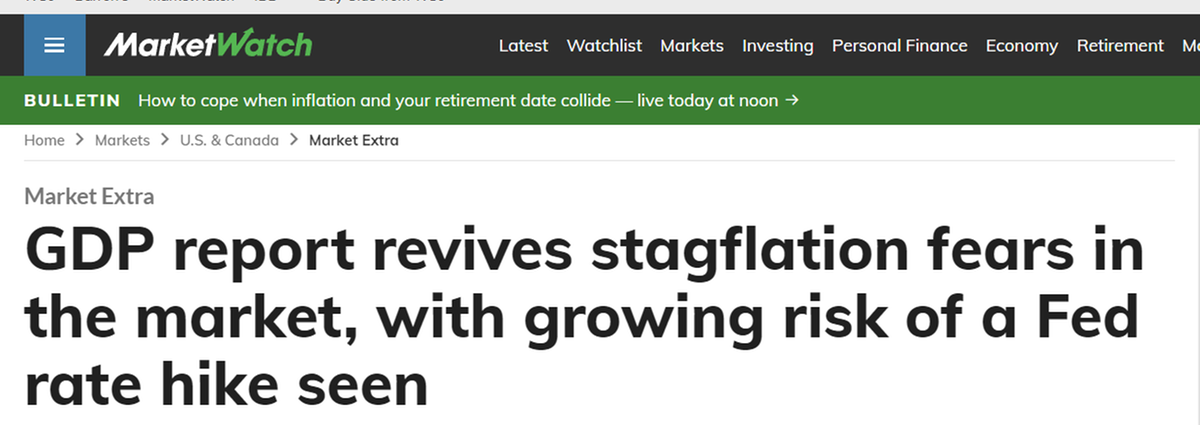 美國(guó)財(cái)經(jīng)新聞網(wǎng)站市場(chǎng)觀察25日?qǐng)?bào)道稱,近期的美國(guó)經(jīng)濟(jì)數(shù)據(jù)給交易員、經(jīng)濟(jì)學(xué)家和其他人士敲響了警鐘,他們開(kāi)始表達(dá)對(duì)這個(gè)世界最大經(jīng)濟(jì)體或?qū)⑾萑霚浀膿?dān)憂。滯脹是通脹上升和經(jīng)濟(jì)增長(zhǎng)放緩的結(jié)合,被美聯(lián)儲(chǔ)政策制定者視為所有可能結(jié)果中最糟糕的,因?yàn)樗冉?jīng)濟(jì)衰退更難解決。