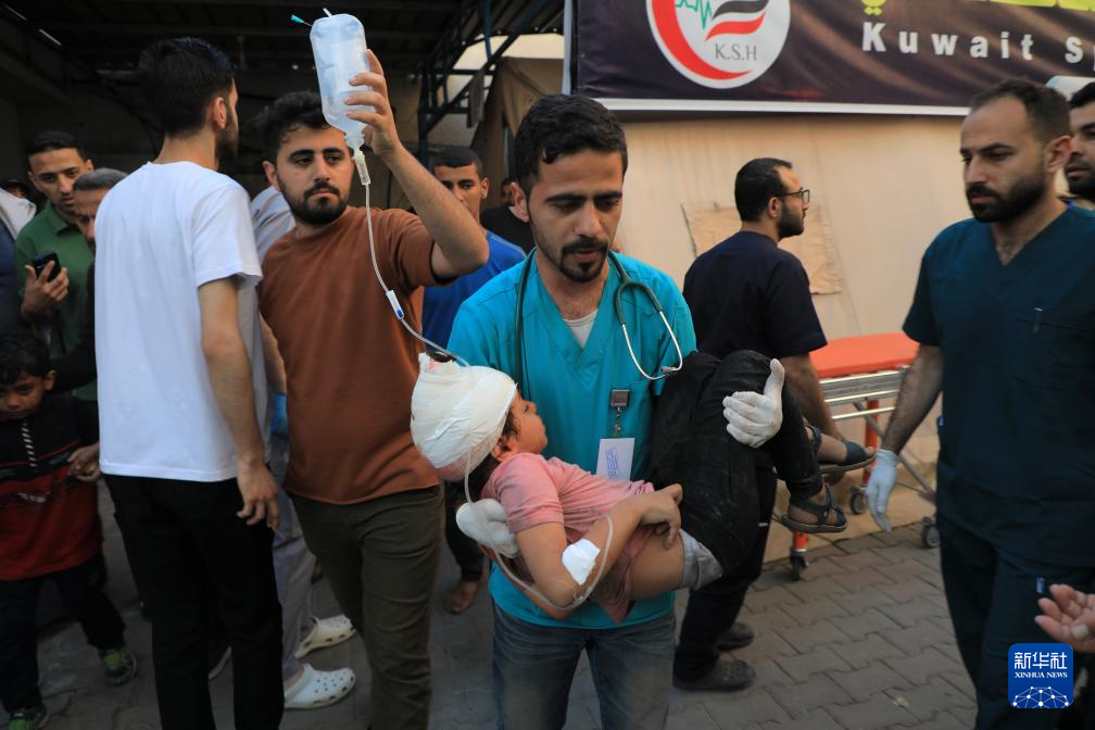 5月8日,醫(yī)護人員在加沙地帶南部城市拉法一處醫(yī)院轉(zhuǎn)移受傷的兒童。新華社發(fā)(里澤克·阿卜杜勒賈瓦德攝)