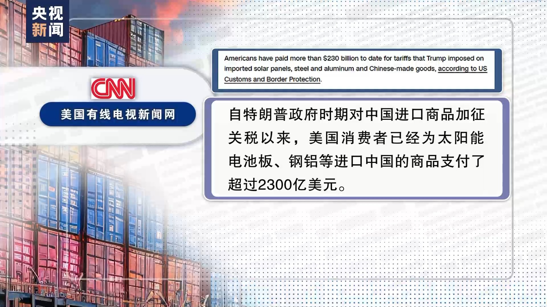事實(shí)證明,美國(guó)保護(hù)主義措施無(wú)一例外只是“回旋鏢”式的自傷游戲。據(jù)美國(guó)有線電視新聞網(wǎng)3月引用美國(guó)海關(guān)及邊境保護(hù)局?jǐn)?shù)據(jù),自特朗普政府時(shí)期對(duì)中國(guó)進(jìn)口商品加征關(guān)稅以來(lái),美國(guó)消費(fèi)者已經(jīng)為太陽(yáng)能電池板、鋼鋁等進(jìn)口中國(guó)的商品支付了超過(guò)2300億美元。