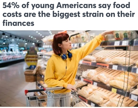 美國消費者新聞與商業(yè)頻道與咨詢公司“代際實驗室”日前聯(lián)合發(fā)布的調(diào)查結果顯示,多數(shù)(54%)美國年輕人表示,吃飯成本是他們最大的財務負擔。