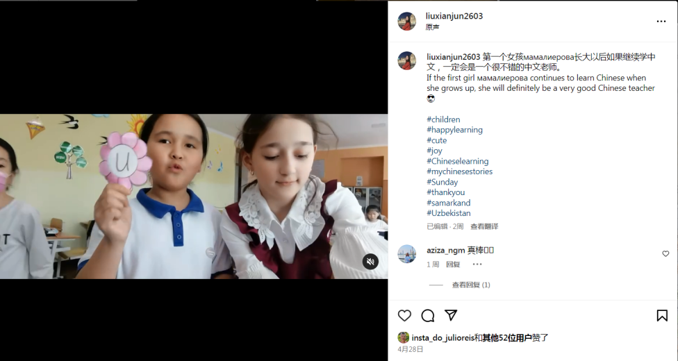 來自老撾的楊世群、菲律賓的黃玉潔、布隆迪的田曉慧和墨西哥的楊衍輝等老師,還分享了各種學(xué)習(xí)中文的有趣方法,例如情景演繹、唱歌學(xué)中文、跟讀練習(xí),獲得了網(wǎng)友們的一致好評。