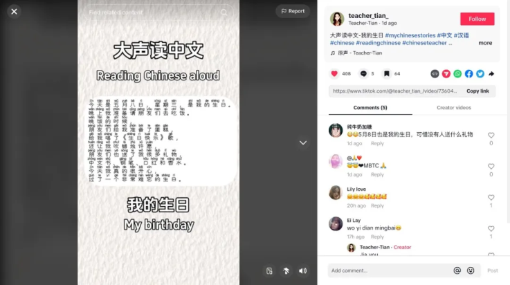 同時,眾多海外外籍博主也積極參與活動,分享他們與中文的美好緣分。美國博主Kyle Strickland通過情景演繹的形式分享學(xué)習(xí)中文的獨(dú)特方法,印度尼西亞籍中文老師Angelica的趣味中文小課堂更是收獲無數(shù)“催更”。