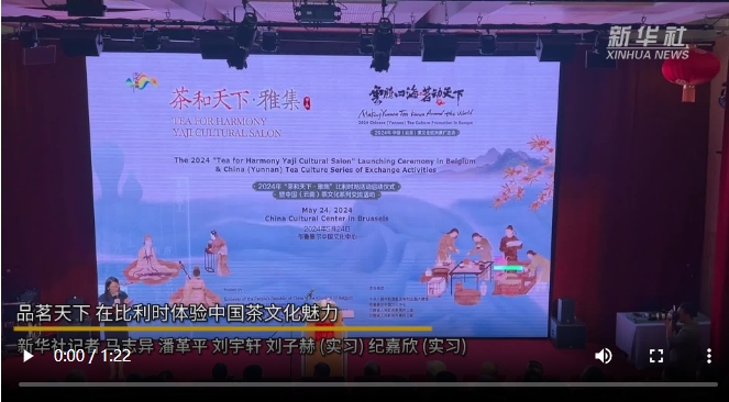 “茶和天下·雅集”云南茶文化交流活動24日在比利時布魯塞爾中國文化中心舉辦。活動以茶為媒,通過茶主題文藝展演、茶文化詩詞分享會、中國國家級非遺技藝展示和體驗等多種形式,吸引比利時民眾感受中國茶文化的魅力。