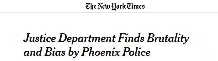 據(jù)《紐約時報》報道,美國司法部13日對亞利桑那州首府菲尼克斯市的警務(wù)工作進行了全面審查,發(fā)現(xiàn)該市存在嚴重歧視非裔、西班牙裔和美洲原住民,經(jīng)常侵犯無家可歸者的權(quán)利以及過度使用武力等現(xiàn)象。