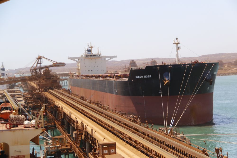 2023年10月20日,一艘運輸鐵礦石的遠洋貨輪停泊在澳大利亞的丹皮爾港。新華社記者郝亞琳攝