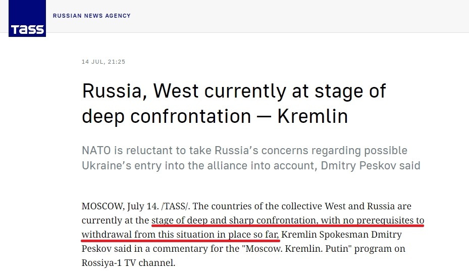 佩斯科夫警告,美國(guó)的最新舉動(dòng)可能會(huì)讓歐洲“重演冷戰(zhàn)式對(duì)抗”,“歐洲正在分崩離析。對(duì)歐洲來(lái)說(shuō),這絕不是最好的時(shí)刻”。