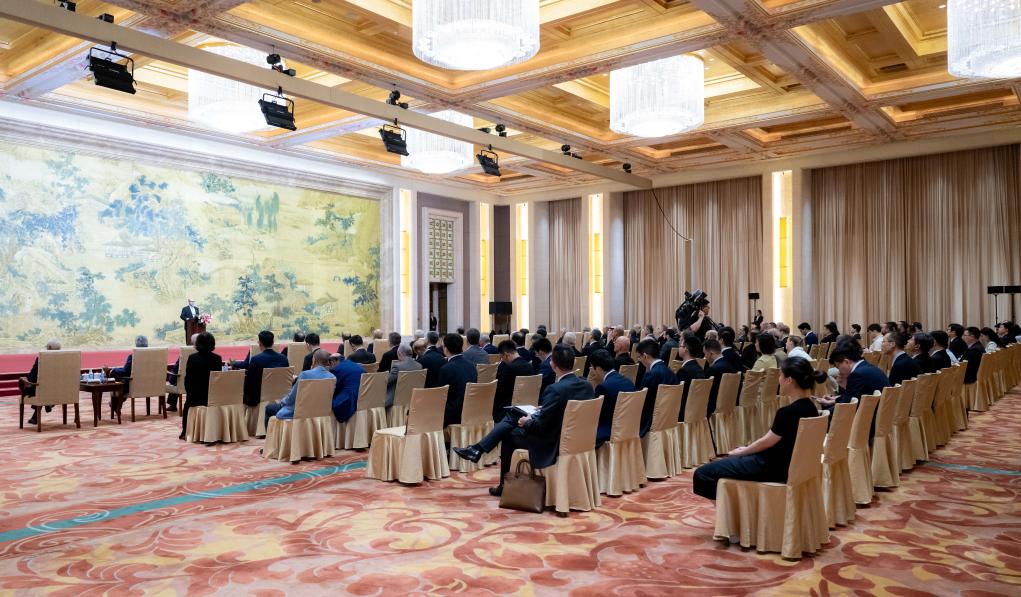 應(yīng)中方邀請,巴勒斯坦14個派別高級別代表于7月21日至23日在北京舉行和解對話。這是7月23日在北京拍攝的和解對話閉幕式。新華社記者翟健嵐攝