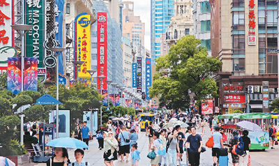 近日,上海迎來(lái)夏季旅游旺季。圖為7月24日,南京路步行街游客眾多。王岡攝(人民圖片)