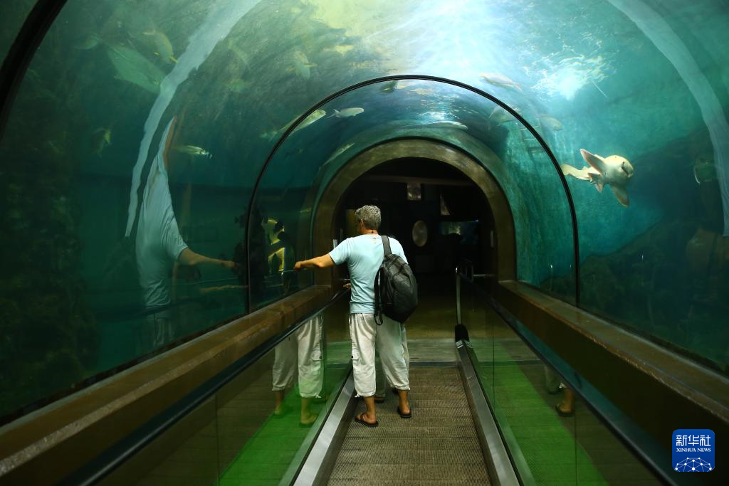 7月23日,游客參觀泰國普吉海洋生物中心內(nèi)設(shè)的水族館。新華社記者 孫瑋彤 攝