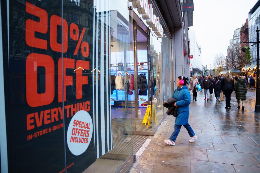 2023年11月22日,一名女子走進(jìn)英國(guó)曼徹斯特一家打折店鋪。新華社發(fā)(喬恩·休珀攝)