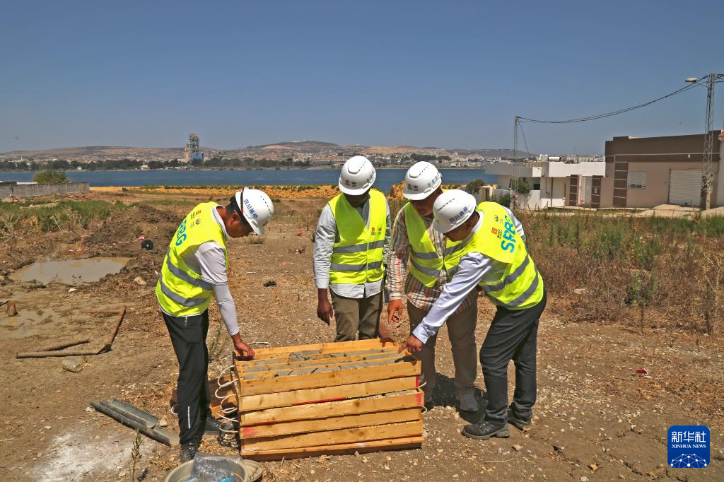 8月12日,在突尼斯比塞大,四川公路橋梁建設集團有限公司工作人員與突尼斯工程師在比塞大運河附近進行地質勘探工作。 新華社發(fā)(阿代爾攝)