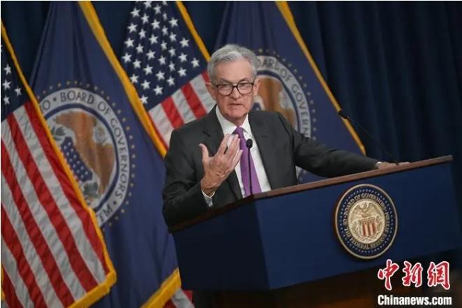 當(dāng)?shù)貢r間2023年7月26日,時任美國聯(lián)邦儲備委員會主席鮑威爾在華盛頓出席記者會。美國聯(lián)邦儲備委員會26日結(jié)束為期兩天的貨幣政策會議,宣布將聯(lián)邦基金利率目標(biāo)區(qū)間上調(diào)25個基點到5.25%~5.5%。中新社記者 陳孟統(tǒng) 攝