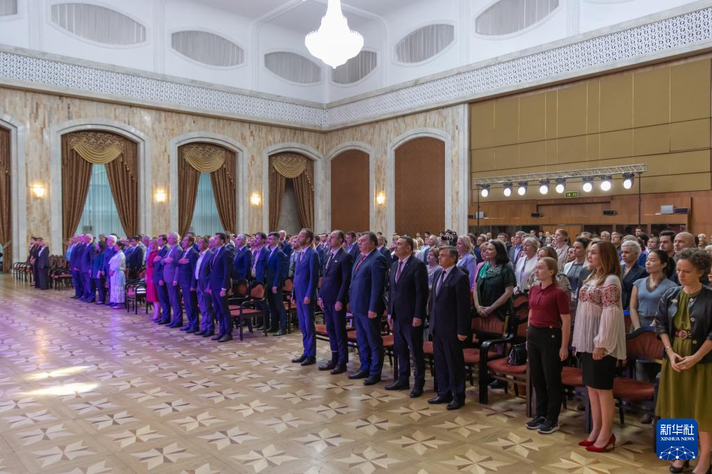 9月25日,在摩爾多瓦基希訥烏,嘉賓參加中國駐摩爾多瓦大使館國慶75周年招待會。新華社發(fā)(王翔攝)