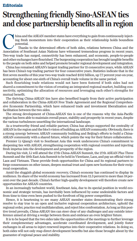 原文標(biāo)題:Strengthening friendly Sino-ASEAN ties and close partnership benefits all in region