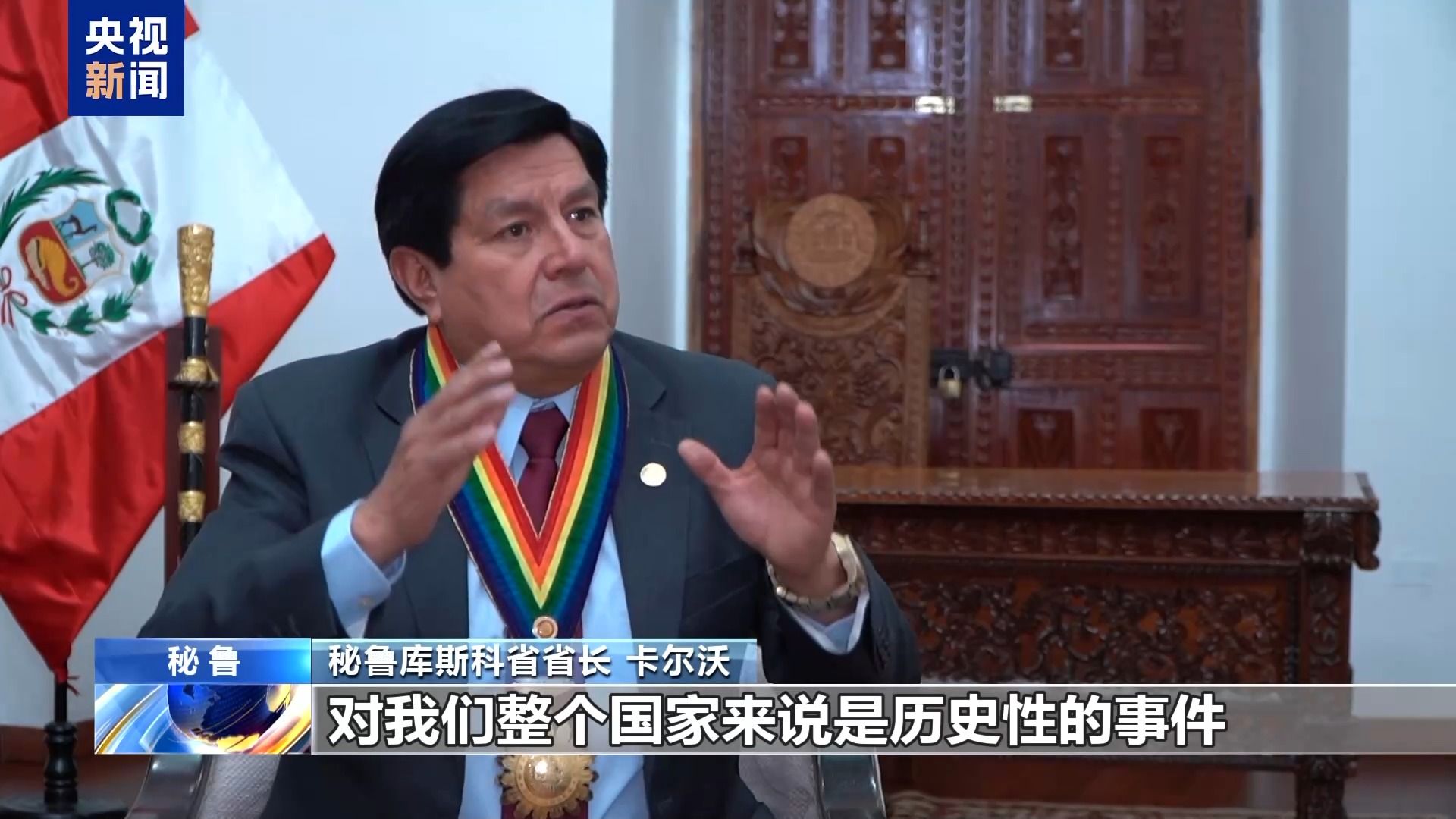秘魯庫斯科省省長 卡爾沃:首先,習近平主席出席亞太經(jīng)合組織領導人非正式會議是具有歷史性意義的,一位如此重要的國家領導人的到訪,將加強兩國在基礎設施、旅游、教育等的合作。習主席的訪問對我們來說是一個探索新合作的機遇,特別是在科技領域的合作,這無疑將有助于我國的發(fā)展。我想再強調(diào),中國國家主席的訪問對我們整個國家來說是歷史性的事件。