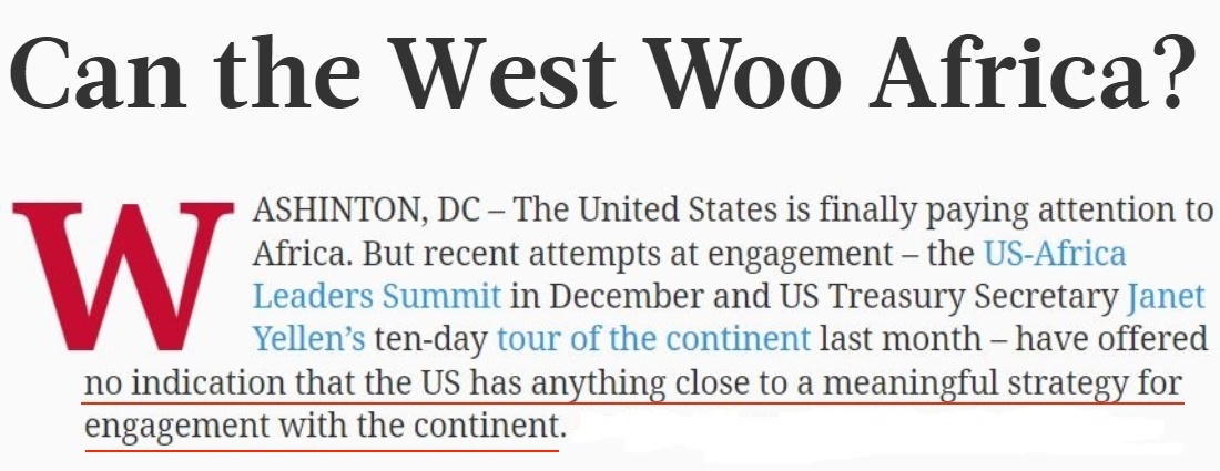 △世界報業(yè)辛迪加網站:雖然非洲以其快速增長的人口、豐富的資源以及龐大的聯合國會員國席位數目重新受到了美國的關注,但沒有任何跡象表明美國已制定出與非洲加強接觸的有意義的戰(zhàn)略。