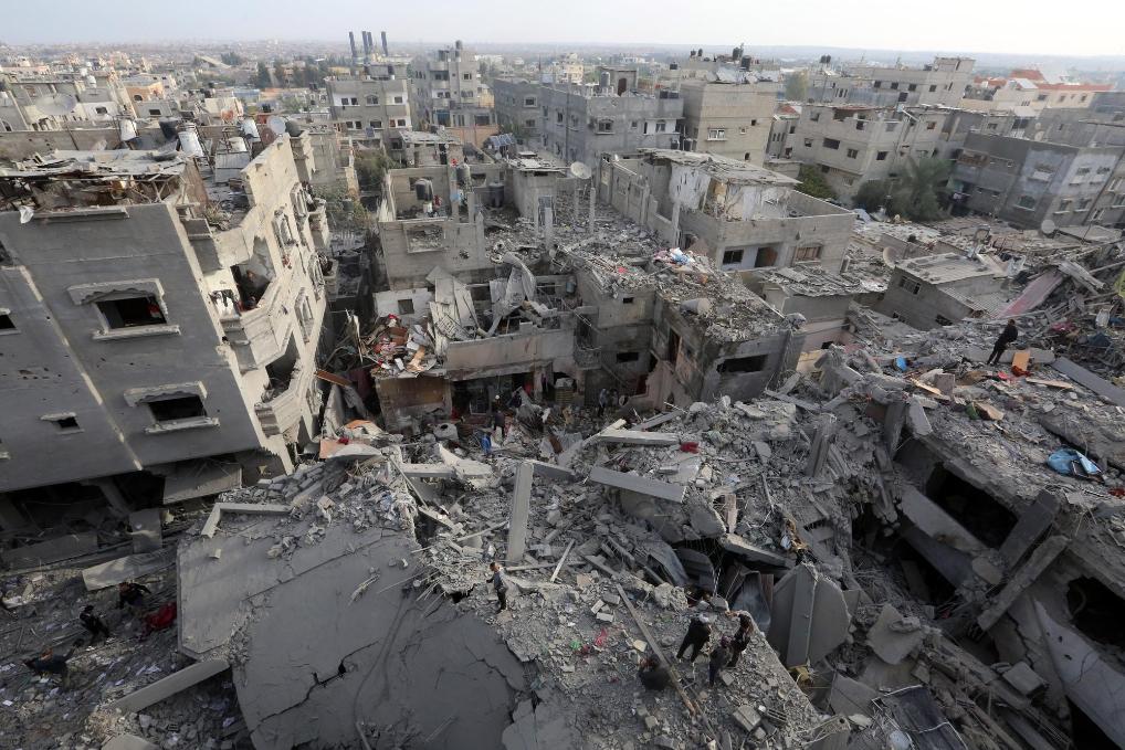 12月7日,在加沙地帶中部努賽賴特難民營(yíng),人們走過(guò)以軍轟炸后的建筑廢墟。新華社發(fā)(里澤克·阿卜杜勒賈瓦德攝)