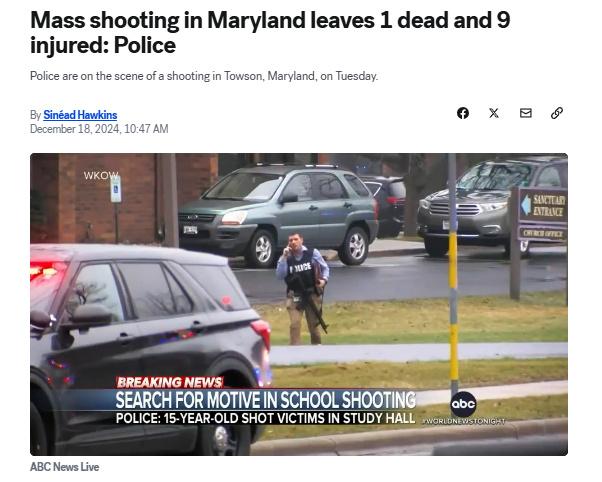 突發(fā)!美國馬里蘭州發(fā)生大規(guī)模槍擊案 致1死9傷