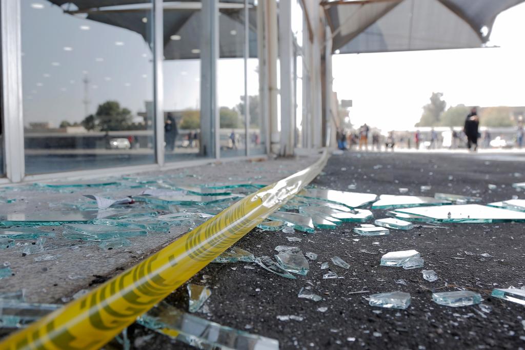 這是12月27日在也門薩那國際機(jī)場(chǎng)拍攝的地面上破碎的玻璃。新華社發(fā)(穆罕默德·穆罕默德攝)