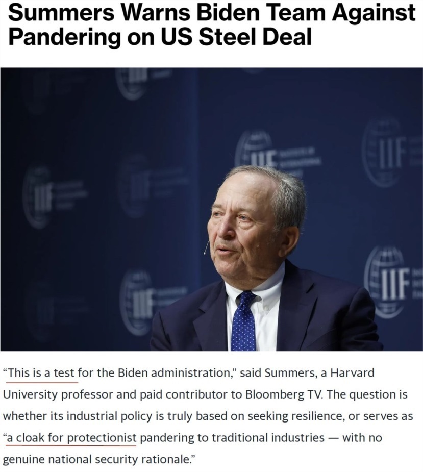 早在去年收購案推進(jìn)過程中,美國前財(cái)政部長勞倫斯·薩默斯就曾表態(tài)認(rèn)為,日鐵收購美鋼并不會(huì)構(gòu)成“國家安全風(fēng)險(xiǎn)”。