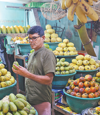 科倫坡市中心水果市場,當(dāng)?shù)鼐用裾谶x購新鮮水果。