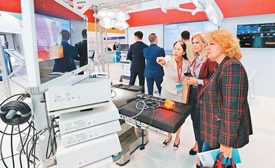 觀眾在白俄羅斯中白工業(yè)園舉行的2024中國醫(yī)學裝備(白俄羅斯)展覽會上參觀。 任科夫攝(新華社發(fā))