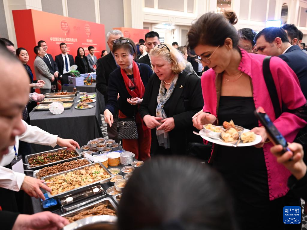 1月19日,在土耳其伊斯坦布爾,來賓在中國駐伊斯坦布爾總領(lǐng)館舉辦的新春招待會上品嘗美食。新華社記者 劉磊 攝
