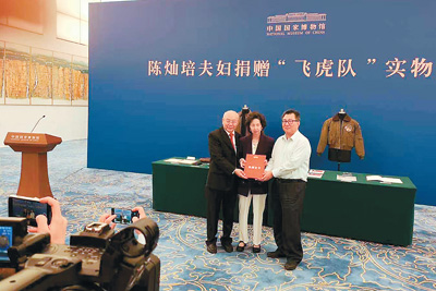 陳燦培夫婦(左一、左二)向中國(guó)國(guó)家博物館捐贈(zèng)飛虎隊(duì)文物。 受訪者供圖