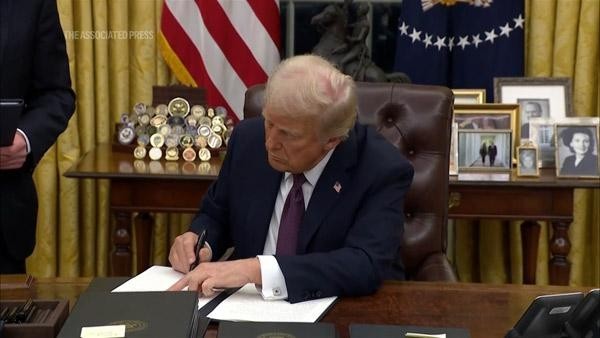 當(dāng)?shù)貢r(shí)間1月20日,特朗普簽署行政命令,要求暫停美國所有對(duì)外援助計(jì)劃。 美聯(lián)社視頻截圖