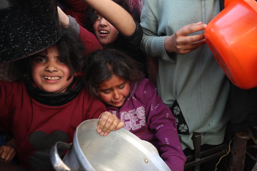 3月22日,在加沙地帶北部拜特拉希耶,女孩在領(lǐng)取救助食物時哭泣。新華社發(fā)(馬哈茂德·扎基攝)