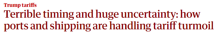 英國《衛(wèi)報(bào)》網(wǎng)站13日刊文稱,受到美國政府近期關(guān)稅政策的影響,運(yùn)價(jià)持續(xù)波動(dòng)、港口擁堵恐成為全球貨物運(yùn)輸在短期內(nèi)面臨的常態(tài)。