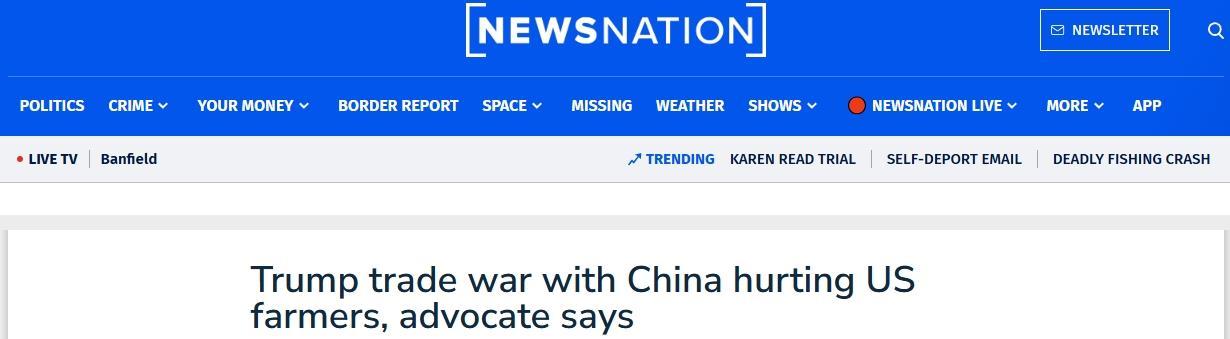 △美國媒體援引美國農(nóng)民工會(huì)主席的評(píng)論:特朗普發(fā)起對(duì)中國的貿(mào)易戰(zhàn)傷害了美國農(nóng)民