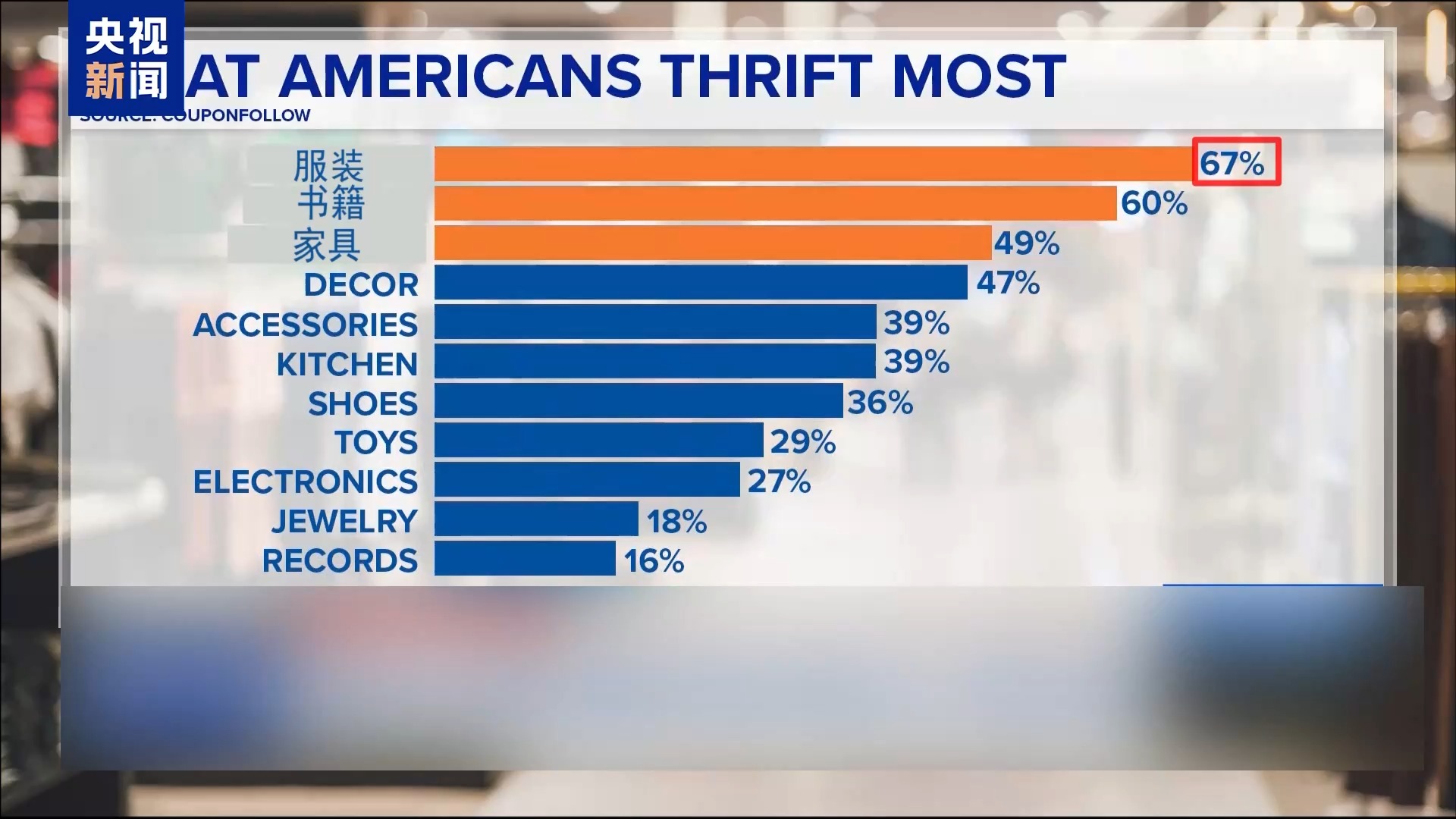 美國一家在線交易平臺(tái)(CouponFollow)的一組調(diào)查數(shù)據(jù)顯示,67%的美國消費(fèi)者選擇在二手市場(chǎng)購買服裝,60%的人購買書籍,近50%的人購買家具。