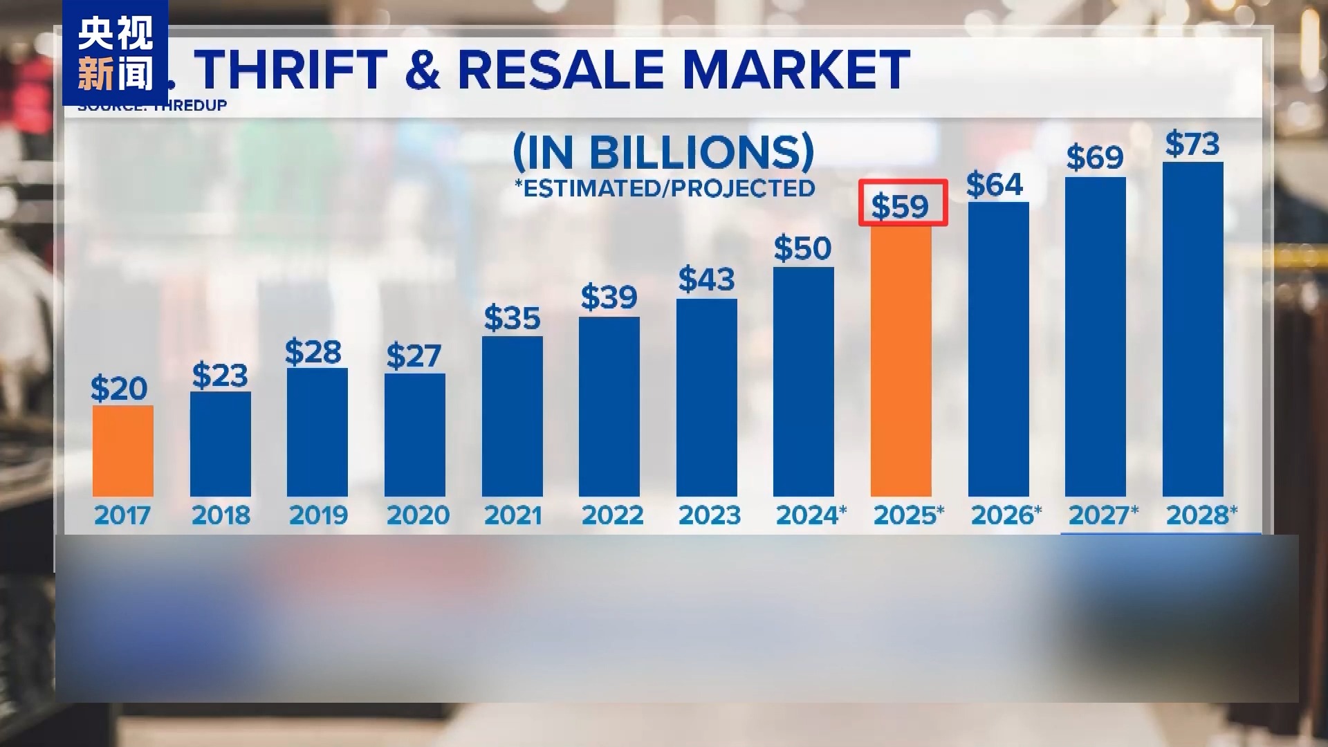 美國二手商品交易在線平臺(tái)思雷達(dá)普公司的數(shù)據(jù)顯示,2017年美國二手交易市場(chǎng)的價(jià)值只有200億美元。根據(jù)該公司的預(yù)測(cè),受關(guān)稅政策影響,2025年二手交易市場(chǎng)價(jià)值將升至590億美元,此后也將一路飆升,照此發(fā)展2028年的價(jià)值將達(dá)到730億美元。