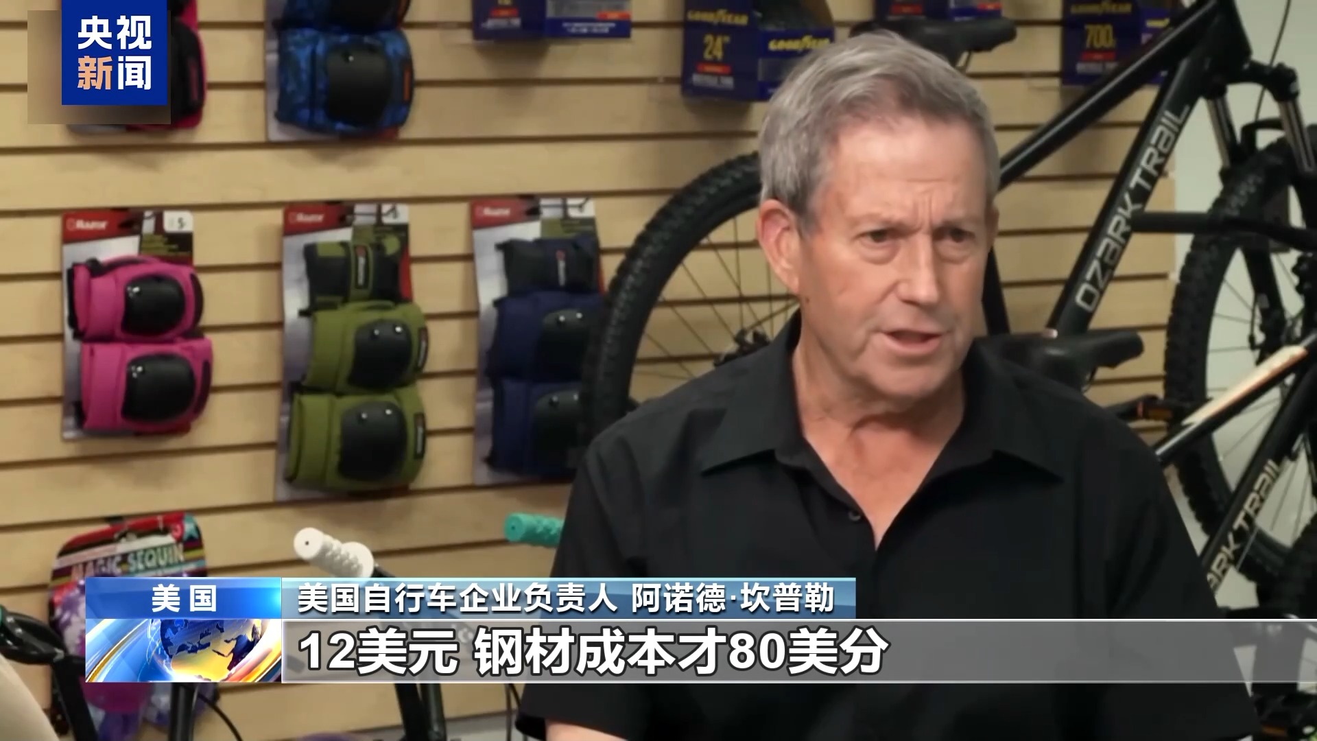 美國自行車企業(yè)負責人 阿諾德·坎普勒:我給你講個真事,幾年前有家美國供應商找到我們,說想給我們生產(chǎn)車把,報價是12美元。12美元,鋼材成本才80美分,我很驚訝。要是現(xiàn)在所有零件都本土生產(chǎn),原本100美元的自行車立馬得賣到1000美元。