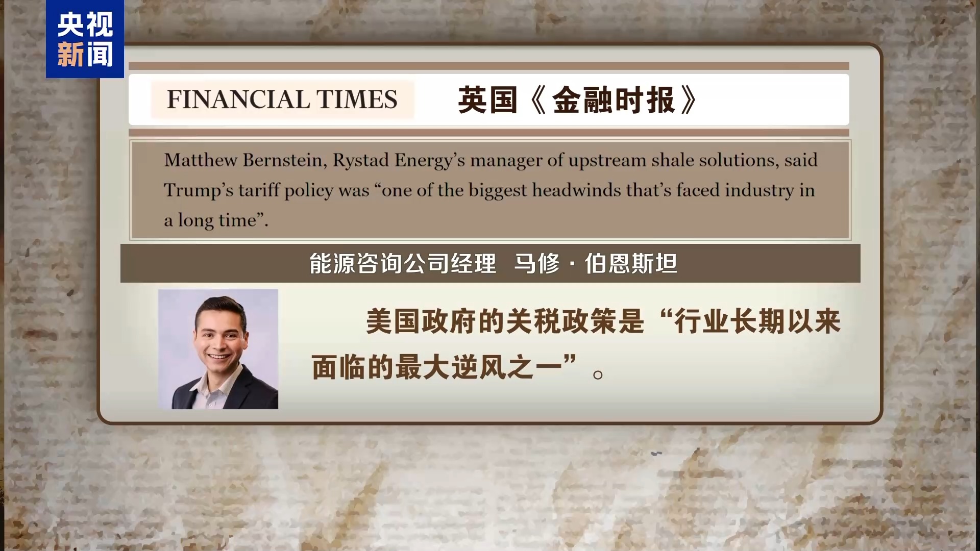 英國《金融時報》援引能源咨詢公司經(jīng)理馬修·伯恩斯坦的話報道稱,美國政府的關(guān)稅政策是“行業(yè)長期以來面臨的最大逆風之一”。他補充說:“如果這種狀況持續(xù)并且引發(fā)經(jīng)濟衰退,那么今年美國石油行業(yè)可能將毫無增長。”