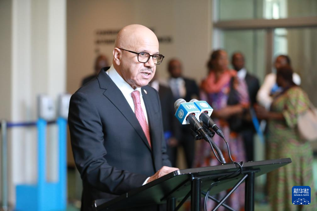 6月3日,在位于紐約的聯(lián)合國總部,利比里亞副外長格雷在利比里亞當(dāng)選聯(lián)合國安理會(huì)非常任理事國后講話。新華社記者 謝鍔 攝