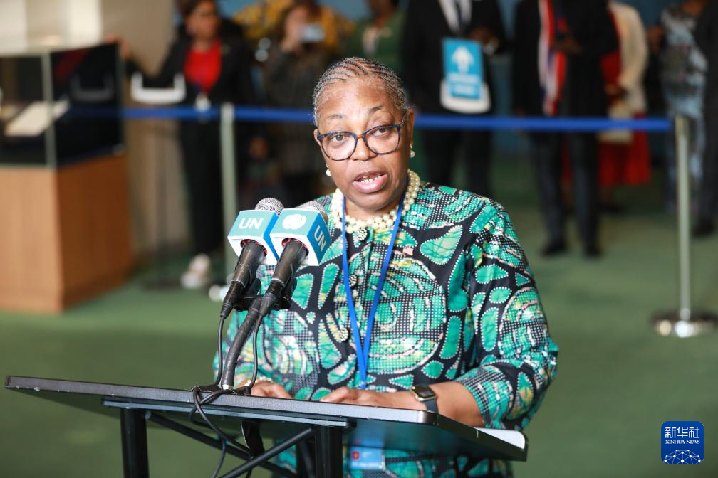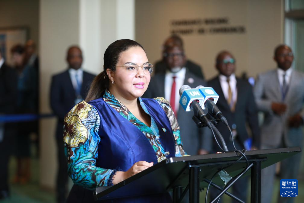 6月3日,在位于紐約的聯(lián)合國總部,剛果(金)外長泰蕾茲·卡伊寬巴·瓦格納在剛果(金)當(dāng)選聯(lián)合國安理會(huì)非常任理事國后講話。新華社記者 謝鍔 攝