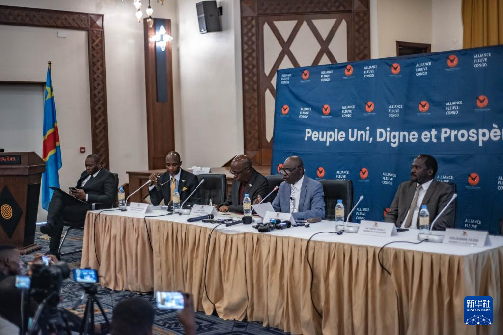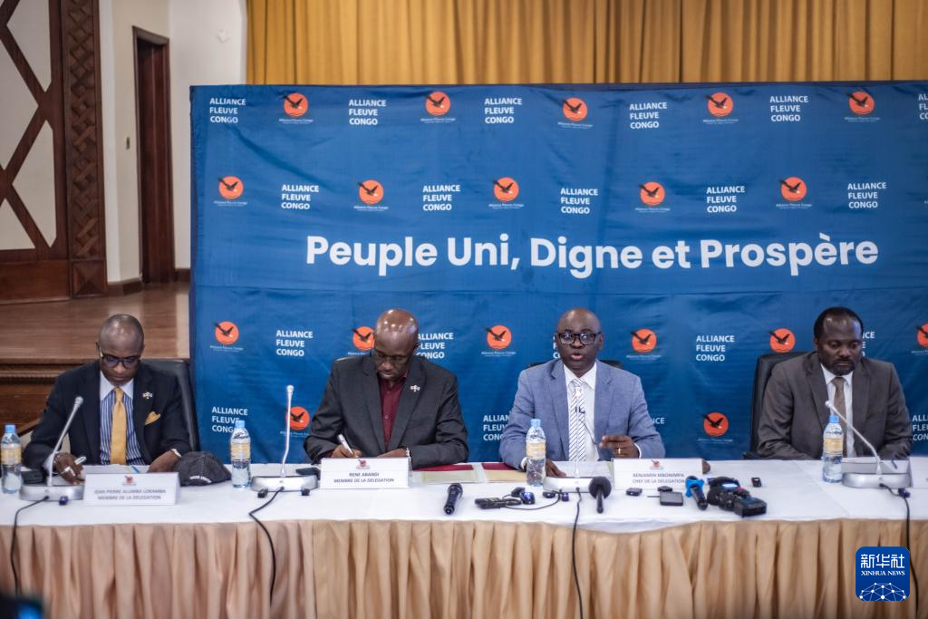 7月25日,在剛果(金)北基伍省首府戈馬市,“M23運(yùn)動(dòng)”對(duì)話(huà)代表姆博寧帕(右二)出席記者會(huì)。新華社發(fā)(扎內(nèi)姆·內(nèi)蒂·扎伊迪攝)