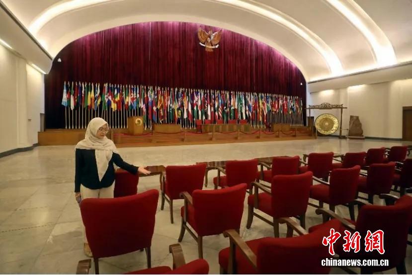 當(dāng)?shù)貢r(shí)間2025年3月18日,在萬(wàn)隆亞非會(huì)議紀(jì)念博物館內(nèi),工作人員展示中國(guó)代表團(tuán)在1955年萬(wàn)隆會(huì)議上的座席區(qū)域。 中新社記者 李志全 攝
