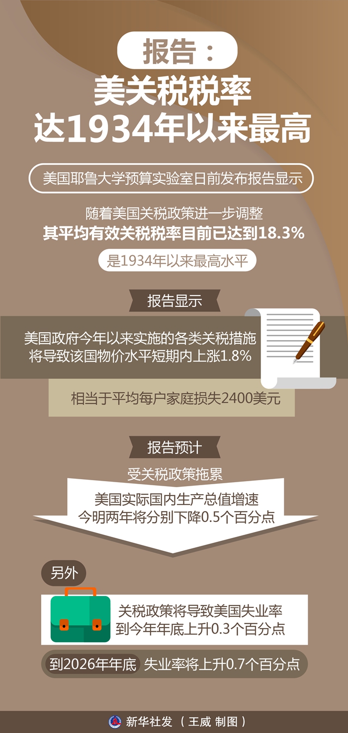 美國耶魯大學(xué)預(yù)算實(shí)驗(yàn)室日前發(fā)布報(bào)告顯示,隨著美國關(guān)稅政策進(jìn)一步調(diào)整,其平均有效關(guān)稅稅率目前已達(dá)到18.3%,是1934年以來最高水平。