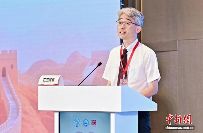 8月23日,吉林長春,日本明治學院大學國際和平研究所客座研究員石田隆至在紀念中國人民抗日戰(zhàn)爭暨世界反法西斯戰(zhàn)爭勝利80周年與東北抗聯(lián)研究國際學術研討會上分享研究成果。(吉林大學國家革命文物協(xié)同研究中心供圖)