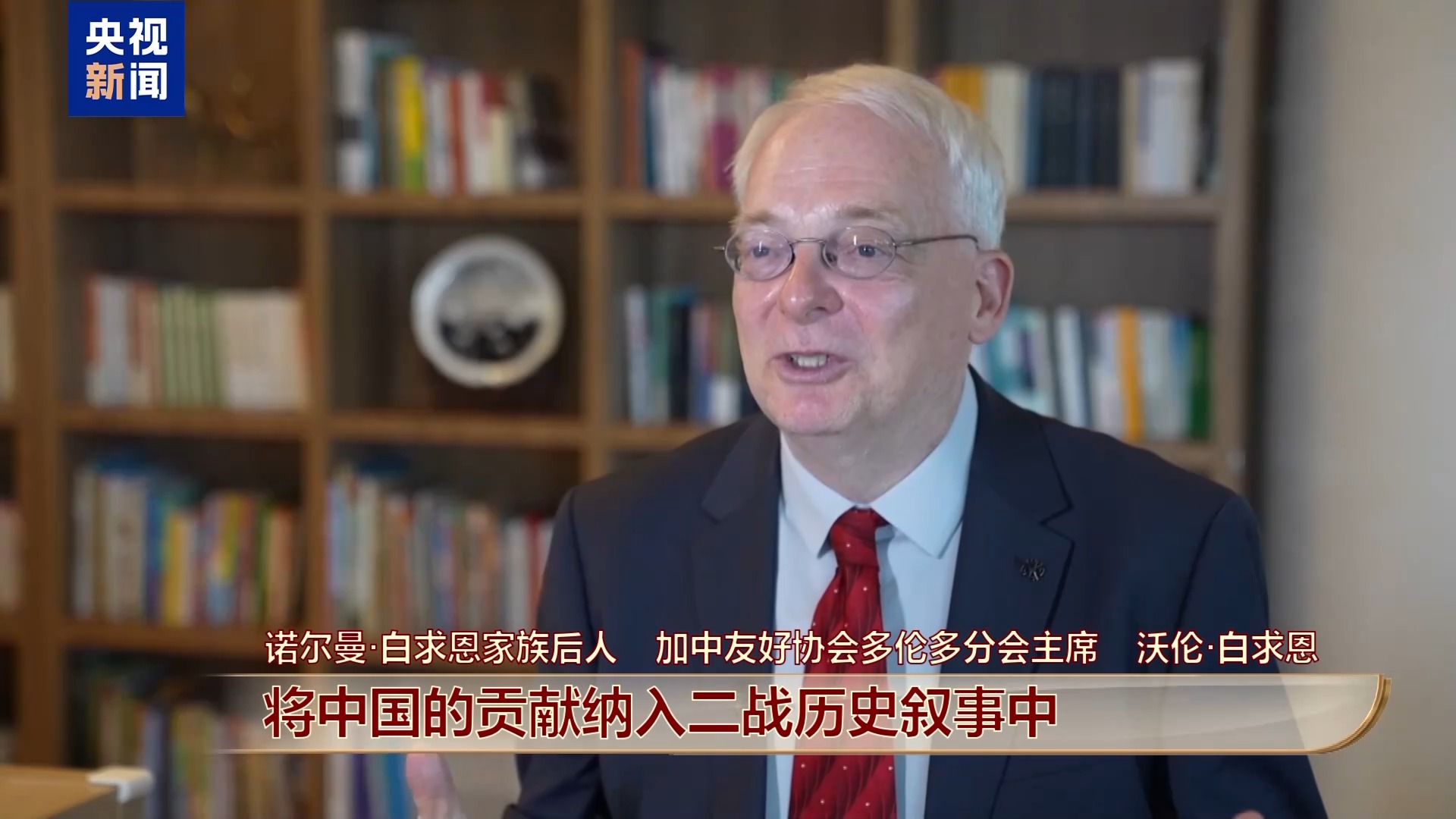 諾爾曼·白求恩家族后人 加中友好協(xié)會多倫多分會主席 沃倫·白求恩:我們要更有全球化視角或者說國際主義精神。我認為我們應(yīng)該重點關(guān)注年輕人,將中國的貢獻納入二戰(zhàn)歷史敘事中,因為80年后的今天,真正經(jīng)歷過二戰(zhàn)且依然健在的人已經(jīng)很少了。我們必須分享研究成果,并向公眾傳播這些歷史。