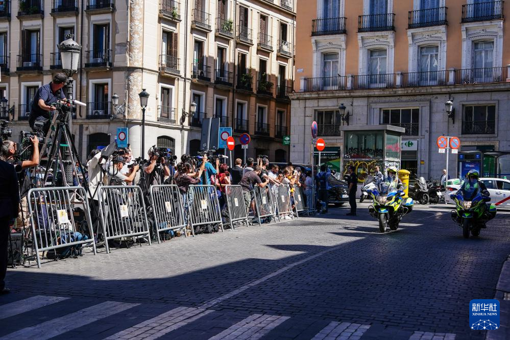 9月14日,在西班牙馬德里,媒體記者在中美經貿會談地點外等待。新華社記者 彭子洋 攝