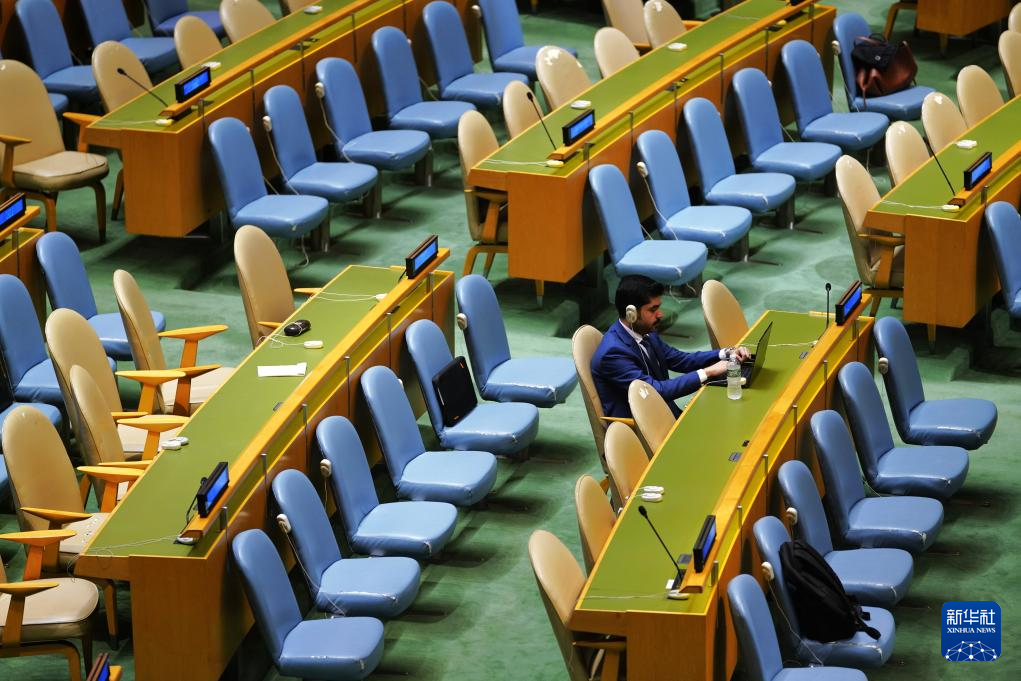 9月26日,在位于紐約的聯(lián)合國總部,眾多代表退場抗議。新華社記者李睿攝