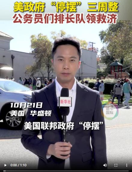21日,美國聯(lián)邦政府“停擺”已整整三周。當天午間,新華社記者在首都華盛頓東郊一處救濟點看到,被拖欠工資的聯(lián)邦雇員排起了數(shù)十米長隊,領(lǐng)取免費食品以解“燃眉之急”。