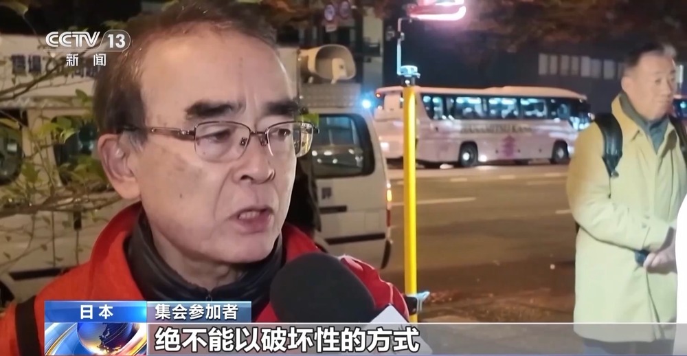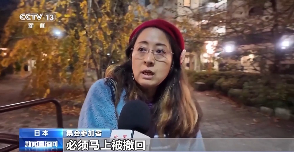 總臺記者 何欣蕾:日本首相高市早苗近期涉臺的錯誤言論在日本國內(nèi)持續(xù)引發(fā)抗議和不滿。19日在京都市役所前,超過百位的當?shù)孛癖娮园l(fā)舉行集會,抗議高市的錯誤言行。像我身后的條幅,上面就寫著“不要拿臺灣作借口,挑起戰(zhàn)爭,高市早苗撤回言論”,以此來表達民眾的心聲。