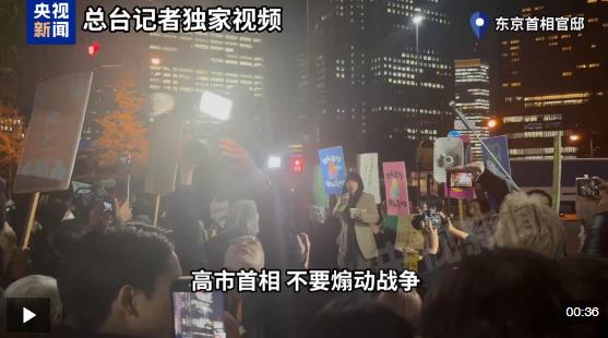 當?shù)貢r間21日晚,數(shù)百名日本民眾聚集在位于東京的首相官邸前,自發(fā)進行集會,要求日本首相高市早苗撤回涉臺錯誤言論。